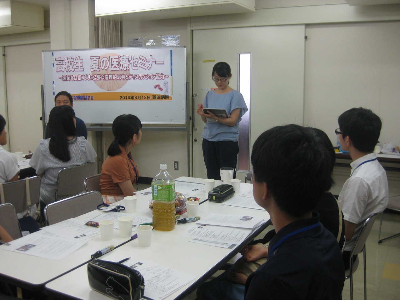 「答えは出ないが、本人・家族・医師それぞれの立場にたって考えることが大事。いろんな人の意見も聞け自分の意見を持つ事は大切な事」と医師からのフィードバックがされました。班に分かれて医師とのしゃべり場も楽しく過ごしてもらえたようです。